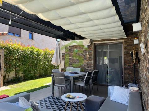 Impresionante chalet pareado situado en Carbajal de la Legua. Esta magnífica vivienda unifamiliar tiene 478 m² construidos. En la planta principal encontramos un hall, un salón comedor de 60 m² con dos grandes ventanales tipo inglés a la fachada principal, cocina grande, moderna, equipada y con zona para comer, una amplia sala de estar con salida al jardín posterior y un baño completo con ducha de hidromasaje. En la primera planta hay 3 amplios dormitorios, dos de ellos con armario empotrado y baño en suite y el dormitorio principal con vestidor y un gran baño privado con bañera de hidromasaje. El amplio bajo cubierta tiene dos estancias muy espaciosas y llenas de luz. La vivienda tiene además cuarto de lavado y dos despensas. En el garaje hay espacio para 4 vehículos. Tiene un precioso jardín privado, perfectamente acondicionado y con zona de estar. Cuenta también con una piscina cubierta y climatizada. La calefacción es individual de gas ciudad y tiene placas fotovoltaicas. La vivienda está en un estado impecable. No deje pasar esta oportunidad y llámenos para hacer una visita.