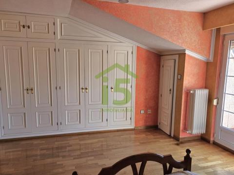 Amplio chalet adosado en urbanización privada en León. Esta magnífica vivienda familiar tiene una superficie de 283 m² repartida en cuatro plantas: en planta sótano tiene un garaje grande (para dos coches), bodega, sala de calderas y trastero; en la planta baja encontramos el salón comedor, muy espacioso, luminoso y con chimenea, la cocina amueblada y un aseo; en primera planta hay tres dormitorios grandes, uno de ellos con terraza, y dos baños completos; el bajo cubierta está acondicionado y distribuido en dos dormitorio y otro baño. Es una vivienda muy soleada y llena de luz, con orientación este y oeste. En una urbanización privada, con zonas verdes, piscina, cancha deportiva y zona infantil y con una situación privilegiada. Este chalet está dentro de la ciudad, a cinco minutos del centro. Una zona con todos los servicios, con tiendas, grandes superficies, (Mercadona, Lidl) farmacias, hostelería, etc... Muy bien comunicada. No dude en llamarnos para visitar esta vivienda.